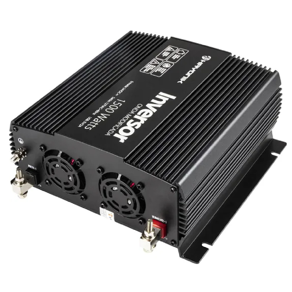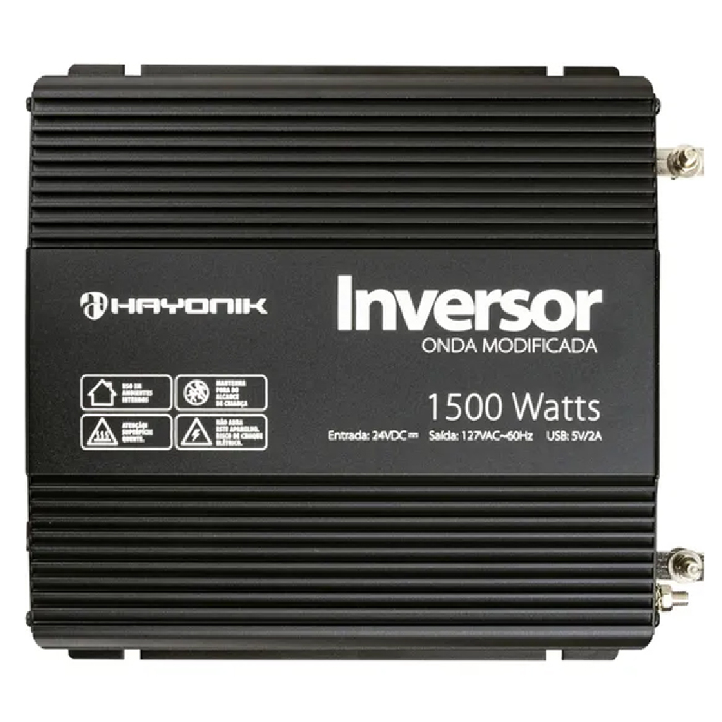 O inversor de Onda Modificada de 1500 Watts PW HAYONIK permite ligar diversos aparelhos elétricos, utilizando uma tensão contínua de baterias 24Vdc e transformando em energia alternada 127V.