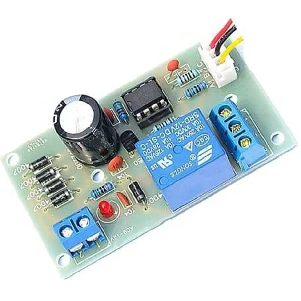 Uma vez montada, a placa apresenta uma entrada de 3 vias que se conecta a dois sensores de nível, como bóias, um para o nível mínimo e outro para o nível máximo. Dependendo do estado dos sensores, a placa ativa ou desativa um relé presente nela, que pode ser conectado a uma bomba ou válvula para controlar a vazão do líquido e gerenciar o nível do reservatório.