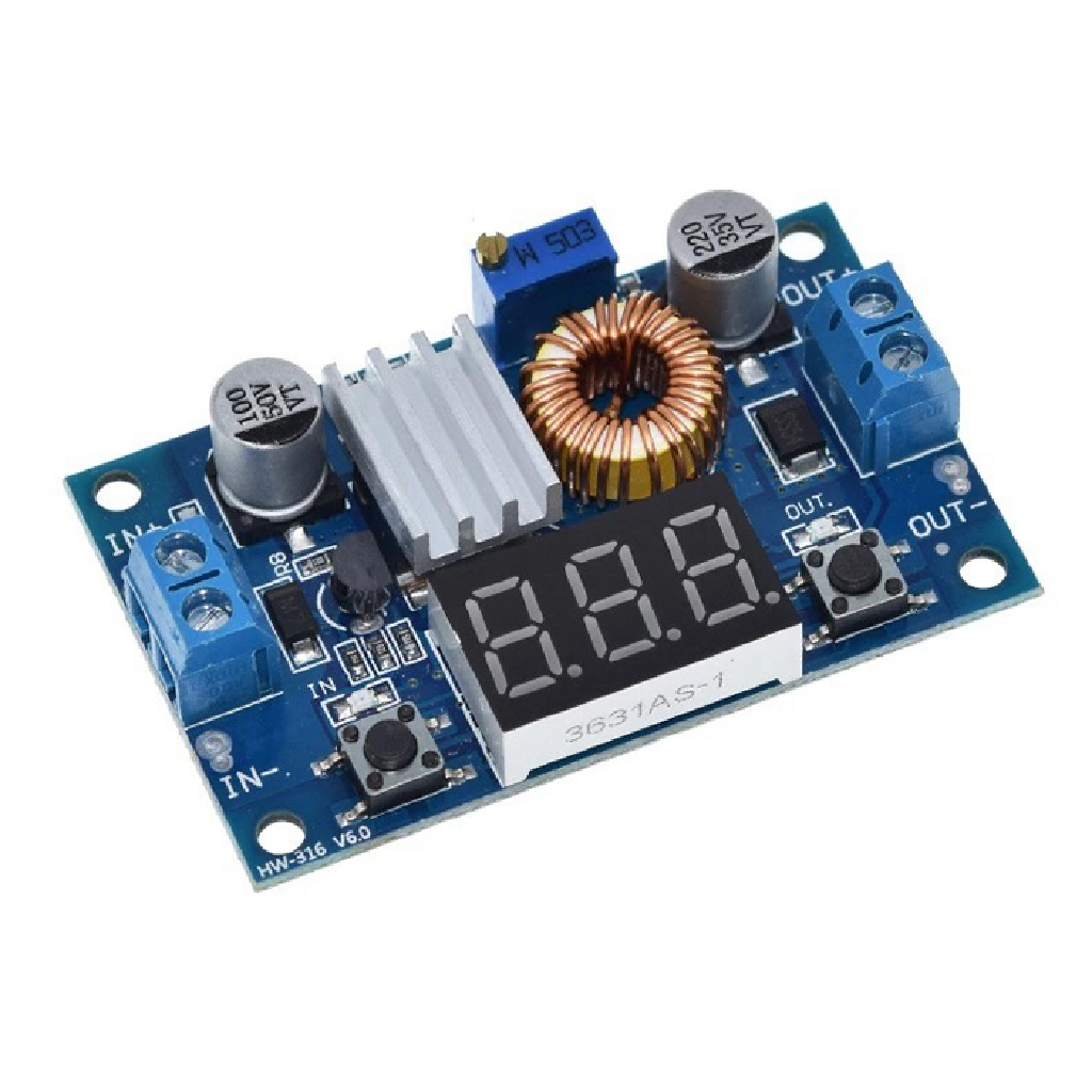 O Módulo Regulador de Tensão Step Down XL4015 5A é uma fonte reguladora de tensão do tipo step down, capaz de receber uma tensão na saída e ajustar para um valor tensão fixa menor que a entrada em sua saída, a tensão de entrada é de no máximo 36V e a tensão de saída é ajustável de 1.25 a 32V, a tensão de saída é ajustável através de um trimpot existente no módulo e pode ser observada através do display presente no módulo. O Módulo Regulador de Tensão Step Down XL4015 5A possui uma interface usb que pode ser usada para carregar dispositivos digitais (OBS.:a tensão de saída usb NÃO é fixa em 5v, segue o mesmo ajuste feito no regulador).