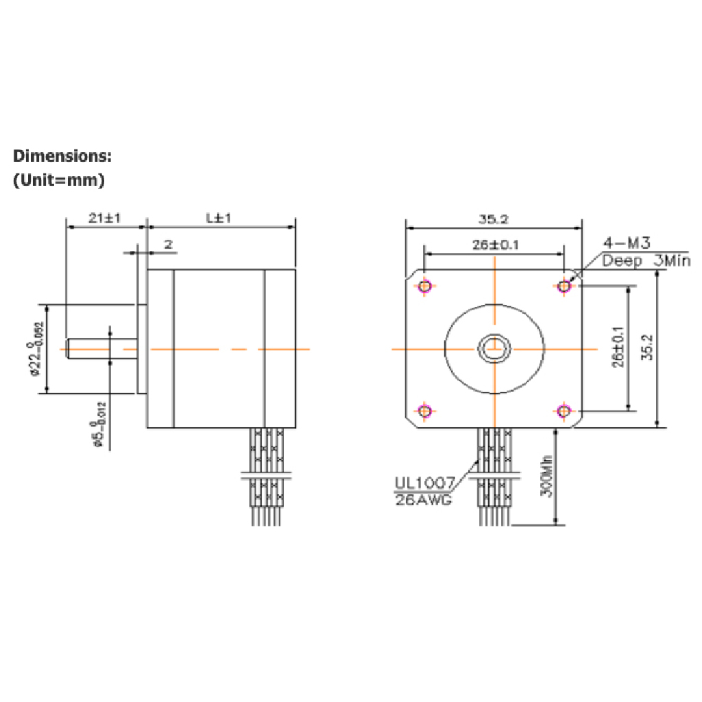 MOTOR DE PASSO NEMA 14 JK35HS34-1004 1.4 KGF*CM