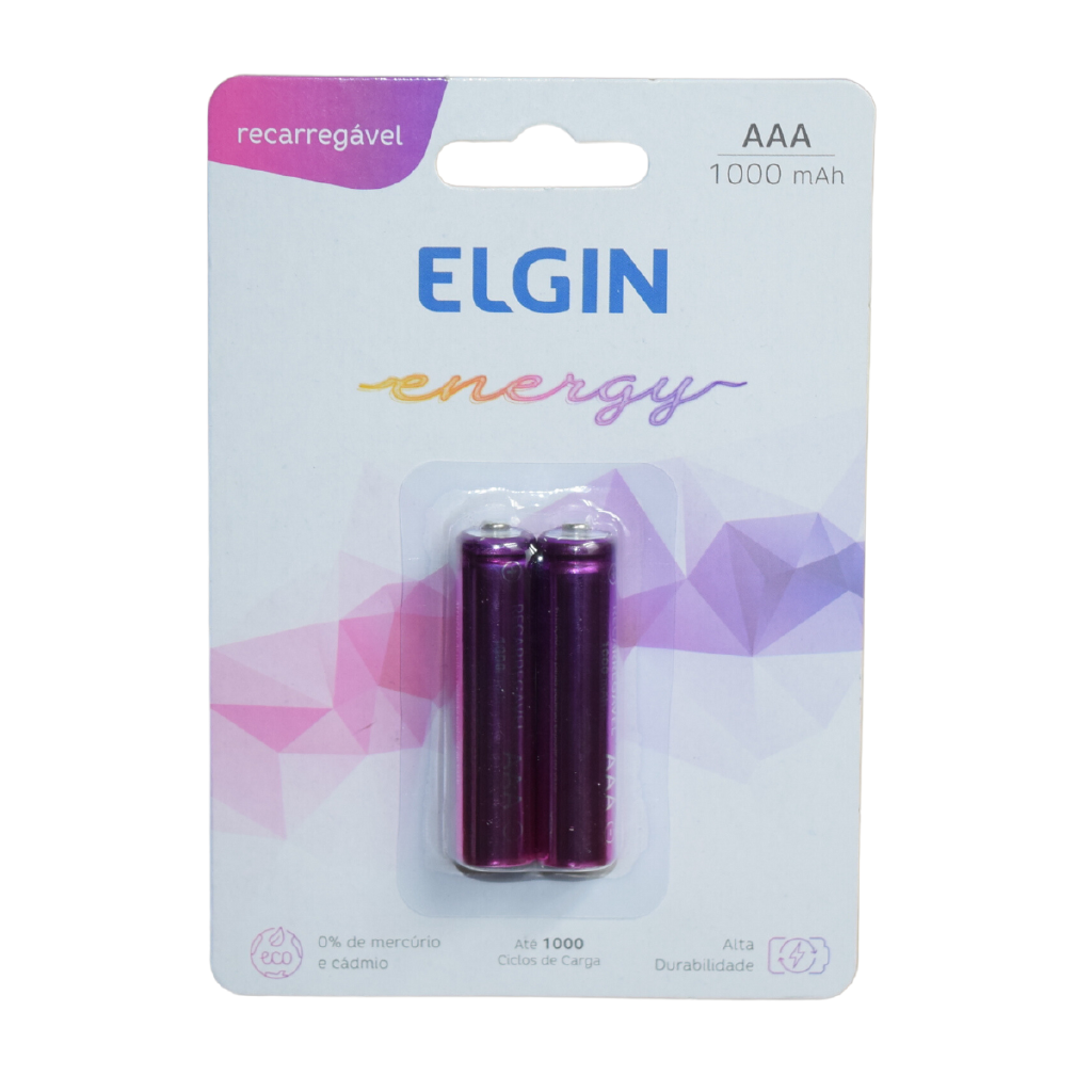 PILHA RECARREGAVEL 1.2V AAA 1000MA NI-MH ELGIN – CARTELA COM 2 UNIDADES